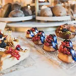 A buffet breakfast is offered at Badrutt'S Palace Hotel St Moritz. The French Le Relais restaurant serves French cuisine. Gastronomic options include a poolside bar. The Badrutt'S Palace Hotel St Moritz features a pizzeria nearby, where guests can enjoy a variety of European cuisine.